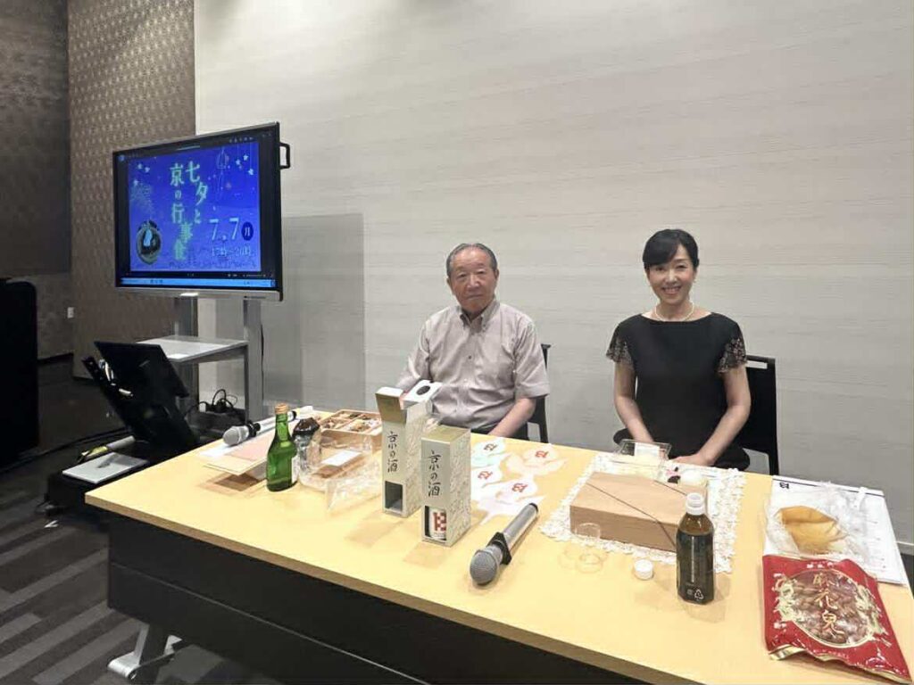 佛教大学「夏季特別講座」オープンラーニングセンター開講2025「七夕と京の行事食」開催日2025年7月7日タイムスケジュール17:00〜18:40講座「七夕と京の行事食について」18:40~19:40 お食事(下鴨茶寮お弁当) 佐々木酒造・日本酒が振る舞われました。19:40~20:00 短冊の作成・笹への飾りつけ 20:00解散 講師 ・八木 透(佛教大学 歴史学部教授) ・小宮 理実(料理研究家・一般社団法人行事食協会 代表理事)当日参加者のみお食事付(有料) オンライン講座での受講は無料