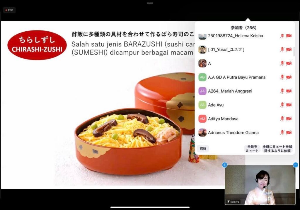 日本ASEAN 友好協力50周年事業・北スマトラ大学含む3校へ「日本の行事食」オンライン講演開催