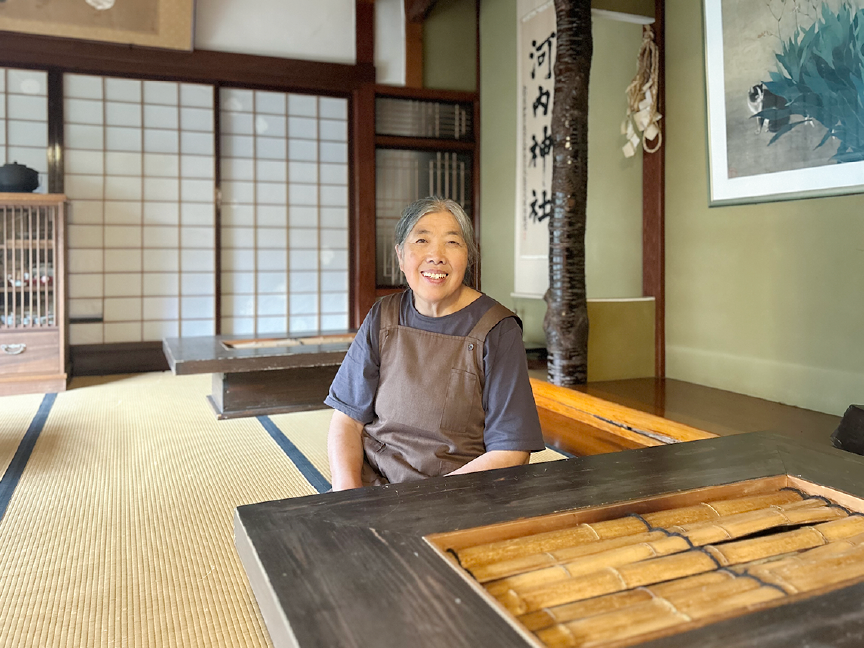 農家民宿レストラン「知憩軒」の女将。親の介護などで地域を離れられなかったのを機に「お客さんに来てもらい、見聞きしたことを広めてもらおう」と、1999年に自宅を改装してはじめる。お客さんには「おいしいよりあったかいと感じて欲しい」と、手間ひまを惜しまず、訪れる人一人ひとりに合わせたおもてなしを心がける。