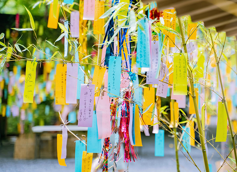 そして奈良時代に、中国から「乞巧奠」が伝来。日本古来の「棚機」の風習と融合し、宮中では星を眺めて詩歌を詠んだり、裁縫や管弦の技芸上達を願ったりする雅な行事として洗練されていきます。やがて江戸時代に入ると、寺子屋の普及や五節供の制定などを背景に庶民にも広まり、短冊に願い事を書いて笹竹に飾る現在のような風習が生まれました。